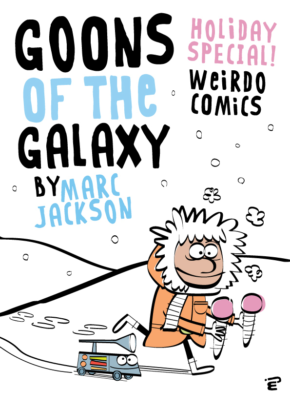 A 12-page GOONS OF THE GALAXY HOLIDAY SPECIAL, just in time for the Christmas! Follow the continuing adventures of Jerry Jetflash and his Robo-bro Honko, first seen in www.acesweekly.co.uk Volume 23 and 25. A simple trip to the freezing cold planet of Frozoh for Ice-cream, turns into an adventure fraught with peril, danger and a blue alien in yellow underpants! Plus, Jerry runs into galactic bad guy the Clammy Lizard, will he escape? All content and characters© Copyright 2016 Marc Jackson and Weirdo comics.
